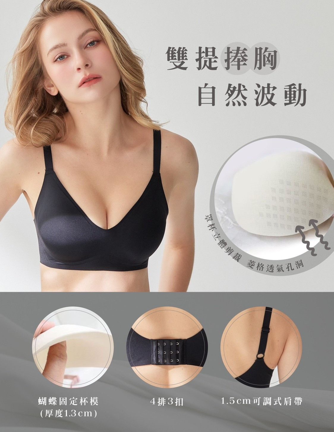 脅邊加高設計 穩穩包覆副乳及多餘背肉